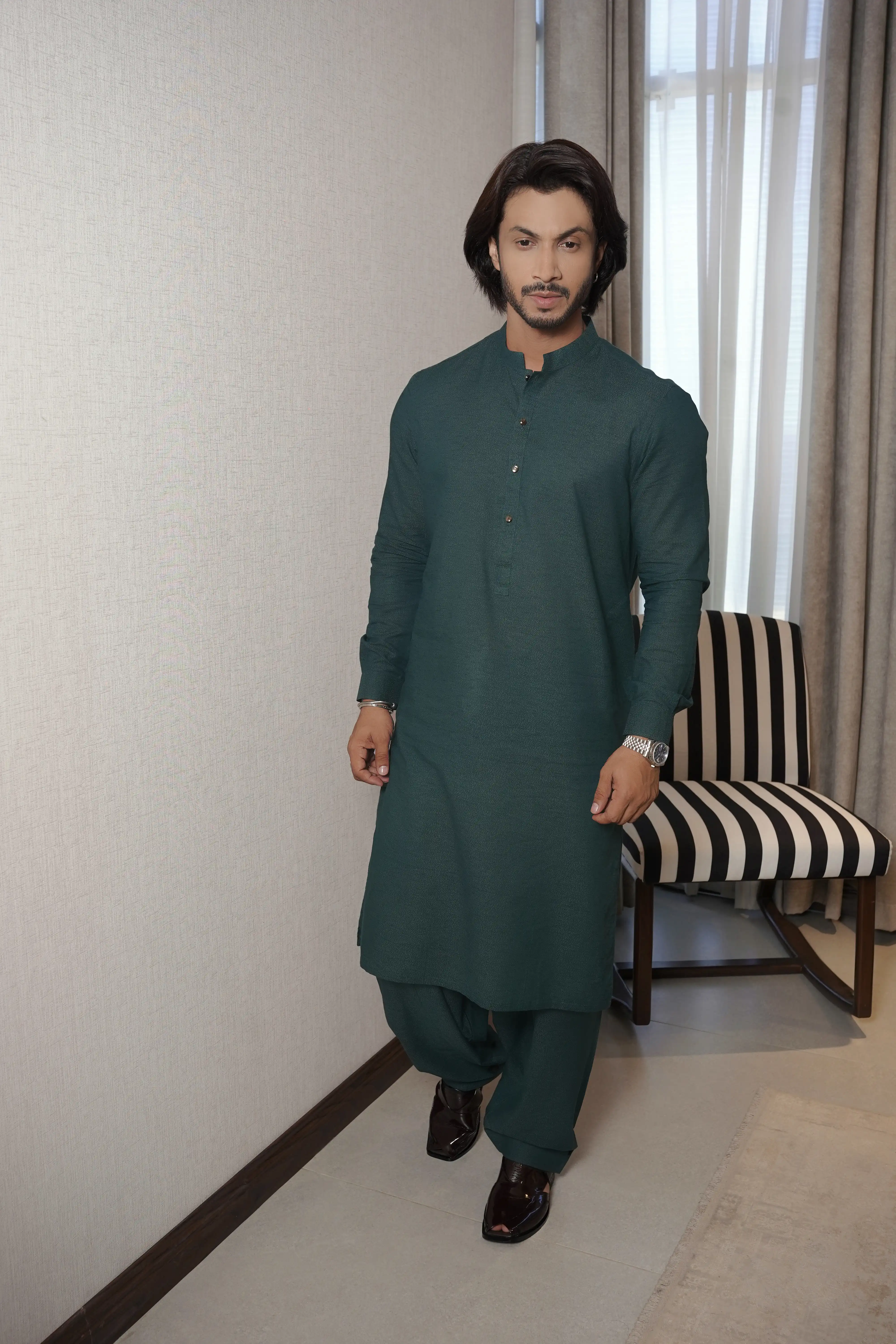 TEXTURED GREEN KAMEEZ SHALWAR